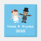 Illustration av en rasbrid och groom. Namn, År och färg i bakgrunden kan enkelt ändras.
