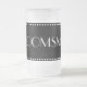 Frosted mugg visas med ett svartvitt tryck med texten Groomsman. Anpassa mugg eller köp som det är.