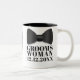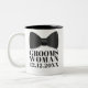 Lämpligt för din Groomswomen eller Groomsmaid, lägg till deras namn och ditt bröllop-datum till den här klassiska svarta och vita Tuxedo Bröllop Bow Tie Groomswomen Mugg