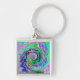 Groovy Abstrakt Aqua och Navy Lava Swirl Fyrkantig Silverfärgad Nyckelring