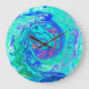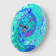 Groovy Abstrakt Ocean Blå och Grön Vätskvirvel Stor Klocka