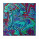 Groovy Abstrakt Retro Art in Blue and Red Kakelplatta