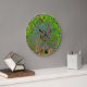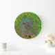 Groovy Abstrakt Retro Lime Green och Blue Swirl Stor Klocka
