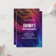 Födelsedagsfest inbjudan med en coola mönster med 60 vibes. Regnbågscirklar och färgader.