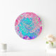 Groovy Aqua Blue och Rosa Abstrakt Retro Swirl Stor Klocka