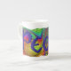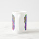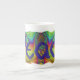Groovy, färglös fraktur med ord PEACE på den, som fäster ett ben china mugg.