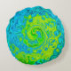 Groovy Chartreuse och Aquamarine Liquid Swirl Rund Kudde