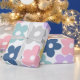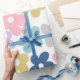 Den här designen har en vintage-inspirerad 70-blommor i daisy lycklig mönster med blommor i fetstil i klara skugga av rosa, guldfärgad gult, klassisk blått, mynta, lavender och vita pasteller. Blommorna ställs mot en vit bakgrund, med en summerisk och avslappnad boho vibe.