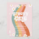 Retro inspirerade Groovy En första födelsedagsinbjudan med Hippie stil, daisy och boho typsnitt och färg.