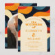 Denna groovy, färgglada, retro, vågiga allt-i-ett bröllopsinbjudan kan anpassas med din information i modern typografi och din bröllopswebbplats QR-kod och foto på baksidan. Designad av Thisisnotme©