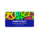 Adressetiketter med sextiotal vibe. Coola fredstecken i ljust och vibrerande färg med alla färg i regnbågen.