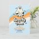 Spooky vibes! Retro groovy Ghost Halloween födelsedagsfest inbjudan i blått och orange. Spooktaculär födelsedagskalas inbjudan med retrospöke och fladdermöss.