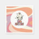 Två. Retro groovy Ghost Halloween födelsedagsfest napkins. Spooktaculär födelsedagsälskonstruktion med retrospöke, blommor och fladdermöss.