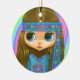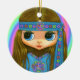 Groovy Hippie Chick i blått Fredstecken Cute Julgransprydnad Keramik