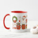 Groovy Hippie Retro God jul Santa Funny Personlig Kaffe koppar har en färgstark heltidsikoner som Jultomten, Julgranar, gingerbröd, vrak, gåvor och texten "God jul och gott nytt år" i modern röd manustypografi. Perfekt till jul- och helgdag. Designad av ©Evco Helgdagars www.zazzle.com/store/evcoholidays