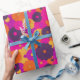 Lägg till blomsterkraft till vilken gåva som helst med det här mönstrade pappra omslaget. Den här presentfigurationen har en hel del över mönster inspirerad av hippietiden med blommor från daisy stil i skuggor av lila, orange, gult och stark rosa.