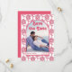 Retro groovy viva-magentan och shock rosa blommor 70s inspirerade till bröllop spara datum-kortet med QR-kod. En retro stil bröllop-design med sju vibes i pastel färg. På framsidan finns och teckningen, fotot och texten "Spara datum" i stil och bakom den en återblomma i mönster medan baksidan är i shock rosa med qr-koden.