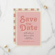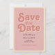 Detta djärva bröllop "spara datumet"-kort omfattar ett groovy 70-tal. Framsidan har en rosa av vintagen med återutskrift, och baksidan har utrymme för att lägga till ett foto, med ett gräns med vibrerande blommigtar parade med ett återstyrt mönster. Den här enkla utformningen är perfekt för par som med en modern tvist spelar en charm med vintage i kärlek. Perfekt för återinspirerad, boho eller sommar-bröllop, det här kortet fångar en roligt och fri estetik. Utforska matchande objekt i vår bröllop-svit för att slutföra utseendet!