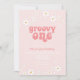 Groovy One! Retro inspirerade till en första födelsedagsinbjudan med 70 daisy i stil och boho typsnitt och färg.