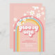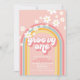 Groovy One! Retro inspirerade till 1:a födelsedagsinbjudan med 70:s stil typsnitt och färg, regnbåge och daisy i rosa