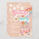 Groovy ONE Rosa Daisy Rainbow Van 1:a födelsedagsinbjudan