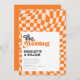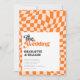 Groovy Orange Checkated Modern Retro Bröllop Inbjudningar