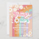 Fira ditt lilla barns milstolpe med denna retroinspirerade pastellfärgade födelsedagsinbjudan! Med regnbågar, tusenskönor, fredstecken och lekfulla groovy-motiv ger denna design en rolig och nostalgisk stämning till din fest. Perfekt för en första födelsedag, sätter den tonen för en glad, färgrik och oförglömlig firande. Anpassa med dina detaljer för att skapa en souvenir som gästerna kommer att älska.