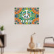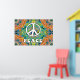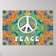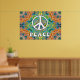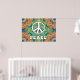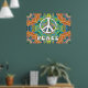 Fredssymbolen och "freden" i ord mot en färglös bakgrund mönster.