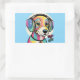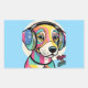 Den här vibrerande och färgstarka tecknaden har en söt valp med hörlurar. Valpuppens päls är en blandning av ljusa färger och mönster, ge det en groovi och retro. Kylmärket är perfekt för att lägga till en aning personlighet och roligt till dina ägodelar eller dela med dig till hund älskare.