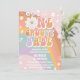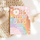 Fira din lilla en milstolpe med denna retro-regnbåge inbjudan till 1-årsdag! Med en groovy pastelldesign med fredstecken, blommor, stjärnor och fet typografi inspirerad av 70-talet, sätter detta kort den perfekta tonen för en rolig och färgglad fest. Anpassa med ditt barns namn, datum och detaljer för att skapa en unik souvenir som gästerna kommer att älska. Perfekt för boho-, hippie- och regnbågsinspirerade fester, denna inbjudan tillför fred, kärlek och glädje till din speciella dag.
