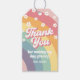 Tacka vänner och familj för att de kom till ditt barns födelsedagsfest med dessa 70-talsinspirerade regnbågsfavorit-taggar.