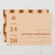 Lägg märke till din stora dag med det här återinspirerade minneskortet, med varma jordtoner, vintage mönster och en djärv modern layout. Det unika datumformatet för lodrät skapar en contemporary men nostalgisk estetik, perfekt för par som kärlek är modernt i mitten av århundradet eller bho bröllop. Idealiskt för ett minimalistiskt, varmtonat eller konstnärligt stilar i bröllop, är denna utformning tonen för ett minnesvärt firande. Anpassa med dina namn och bröllop-detaljer så att det verkligen blir ditt!