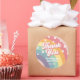 Säg tack till vänner och familj för att du har varit med i din lilla födelsedagsfest med de här 70-talets tematiska regnbågsmärken.