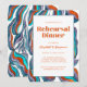 Groovy Retro Blå Vågig Bröllopsrepetition Middag Inbjudningar