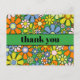Groovy Retro Blommig Färgrik 60-70-tals Mönster Tack Kort. Ljust, glatt och perfekt för vår, sommar eller när som helst. Med en vintage 1960-1970-tals känsla. Av Kierkegaard Design Studio.