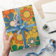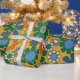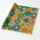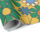 Retro Garden Flowers Groovy 70-talets Blommönster för Multifärgad på Mustard Wrapping Papper Roll. Vintage vibes; vibrerande orange-, blått- och grönt-toner på muterad senap-gult. Av Kierkegaard Design Studio.