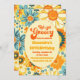Groovy Retro Hippie Blommigt Gult Orange Birthday Inbjudningar