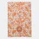 Groovy Retro Orange Blommigts Monogram Kökshandduk