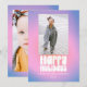 Det här lekfulla julkortet har en bakgrund med en fet rosa-till-lila gradient och bubblig retro-typografi som säger “God Jul,” plus plats för ett foto och personligt namn. Den livfulla färgpaletten och 70-talsinspirerade typografi gör det perfekt för familjer som älskar färg, kreativitet och fet design. Perfekt för att skicka festlig glädje med en rolig, modern twist.