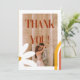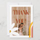 Ett vintage bröllop-tack för roligten och det visuella-kortet som innehåller ditt foto med blommor, en regnbåge och text som säger "Tack!". Orangens typografi. Meddelandet på baksidan kan redigeras eller tas bort (om du vill ge korten i stället). #retro #bröllop