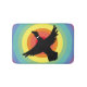 Badmattan har en anka-silhouette bland mönster i regnbågskretsar. Du kan överföra denna färgstarka design till andra produkter och presenter för hemmet. Originalteckning efter Wilderness Store
