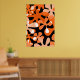 Freeform-groovy-former som påminner om 60- och 70-talen i en färg-palett med orange, svartvitt.