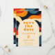 Det här groovy, färgglada, retro, vågiga boho bröllopsinbjudan kan anpassas med din information i modern typografi och ett speciellt foto tillsammans med din bröllopswebbplats QR-kod på baksidan. Designad av Thisisnotme©
