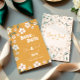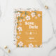 Meddela din speciella dag med stil med detta groovy "Save the Date"-kort. Med en djärv senapsgul bakgrund, fantasifulla blomillustrationer och funky retrotypografi fångar denna design andan av 1970-talets romantik med en modern boho twist. Perfekt för par som planerar ett roligt, stilfullt och oförglömligt bröllop, vare sig det är en sommargårdsfest eller en rustik bohofirande. Personifiera med era namn och bröllopsdetaljer för att skapa tonen för en verkligt groovy kärlekshistoria.