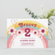 Groovy Two Daisy Rainbow 2-års födelsedagsfest Inbjudningar