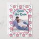 Retro Groovy viva magenta och teal-blommor 70-talet inspirerade till bröllop spara datum-kort med QR-kod. En retro stil bröllop-design med sju vibes i vackra färg. Framsidan har och bågen, fotot och texten "Spara datum" i stil och bakom den en återblomma mönster medan baksidan är i magenta färg med qr-koden.