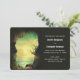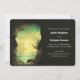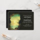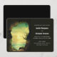 Bröllopsinbjudan med en bild av ett oceaniskt paradis. En klippgrottas ingång högt uppe i bergen med utsikt över ett vackert hav med fåglar som flyger tillsammans.