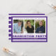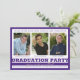 Modern inbjudan till lila och vit studentfest för en kombination av två eller tre vänner eller syskon med foton (en av tre vänner eller, för två personer, ett foto av var och en med båda i mitten). Innehåller en redigerbar titel som du kan lägga till deras skolår eller klassår. Partsinbjudningsinformationen finns längst fram och det finns ett ställe som kan lägga till information om varje student på baksidan (ta bort exempeltexten om du inte vill det eller använda utrymmet för ytterligare information om party). Den här inbjudan finns också som en digital filhämtning för utskrift lokalt eller för delning av digitalt online. ASSISTANS: Om du vill ha hjälp med designändringar eller anpassning, ändra storlek på färg, flytta designen till en annan produkt eller om du vill samordna produkter kontaktar du designern INNAN ORDERING via Chattan Zazzle MESSAGE nedan eller e-post makeitaboutyoustore@gmail.com.