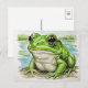 Det här vackra vykortet visar på en levande vattenfärg som illustrerar en grönt groda med fängslande ögon, sitta fredligt av en serene lakeshore. Det färska blå himmel och det milda vatten i bakgrunden skapar en ljus, glad atmosfär, skapar denna perfekt för naturentusiaster i älskare och groddar. Perfekt för brevväxling, pennstift eller för att lägga till ett vykort för brevlådan, för med sig ett stänk i färg och en beröring av utomhusen till vilken brevlåda som helst.