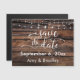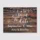 Det här är en rustik men sofistikerad lösning för att spara datumdesignen. Rubribratexten skapades med hjälp av ett utförligt, skript-teckensnitt med blommor och snurrar. Under som är mallutrymmen för din personliga information. All redigerbar text återges i ett mångsidigt serif-teckensnitt. Bakgrunden är täckt med en bakgrundsbild som skildrar träskivor av vågrät med råge. 57 //